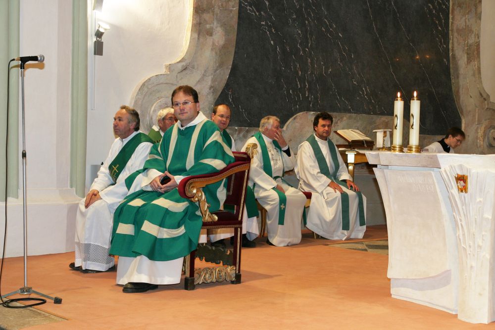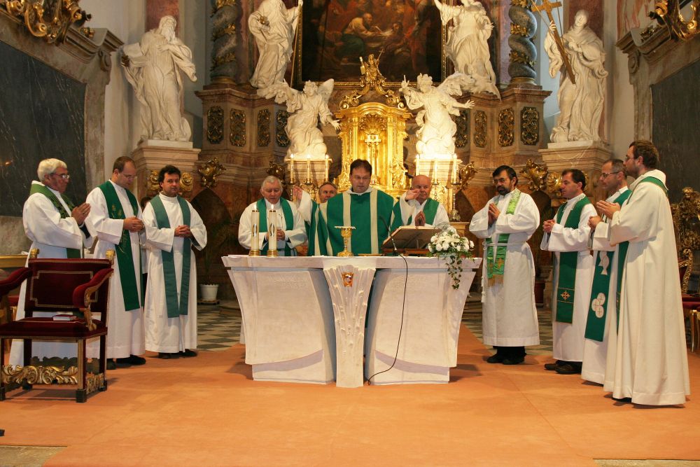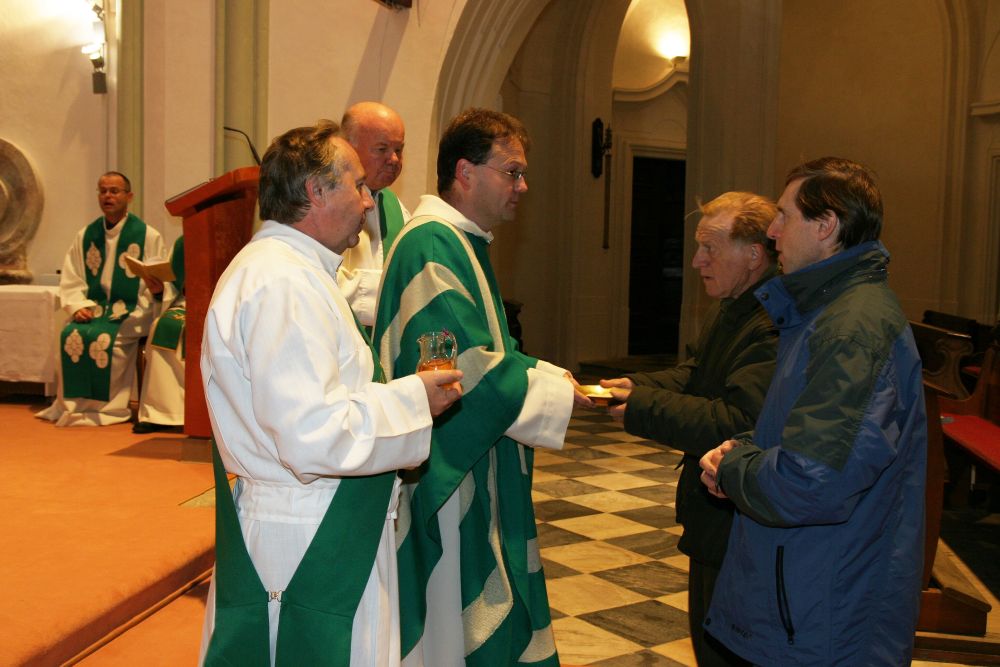 01 - Přivítání kněží žďárského děkanátu otcem Vladimírem Záleským na rekolekční mši sv. a připomenutí smutného výročí zrušení kláštera.