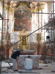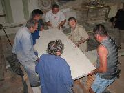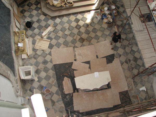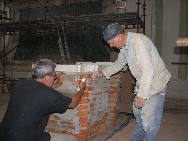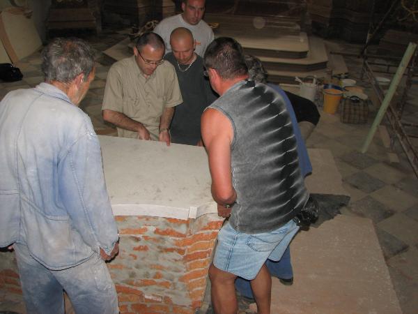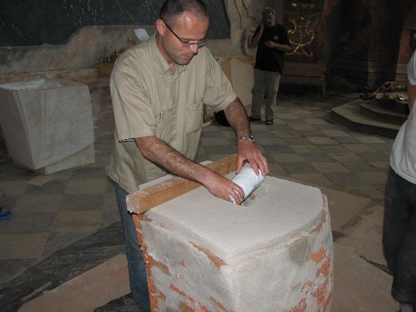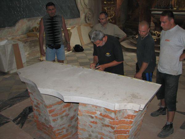 Pokládání mramorové desky nového oltáře